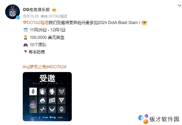 近日,OG战队官方微博发布一条消息,受邀将要奔赴丹麦参加2024 DotA Blast Slam I。