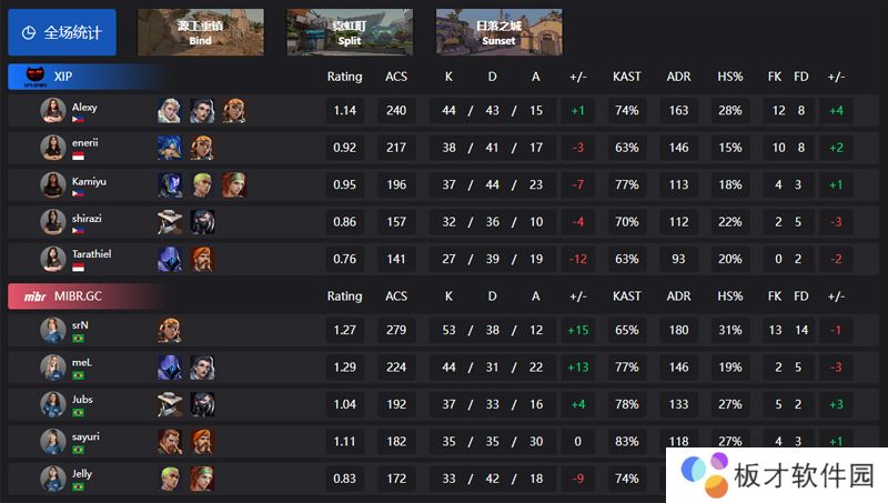 图一源工重镇,MIBR 13:4 XIP,图二霓虹町,MIBR 6:13 XIP,图三日落之城,MIBR 13:5 XIP。来自MIBR战队的srN选手,拿到了全场最高的53总击杀。