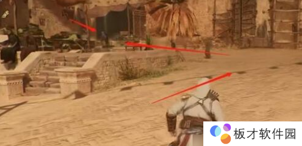 2、在三个NPC的旁边有一个向上的缆绳,上去之后会有士兵,成功暗杀即可获得碎片。