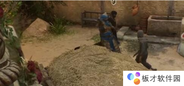 2、跳进草堆等待士兵出现,然后跳出暗杀所有士兵即可获得碎片。