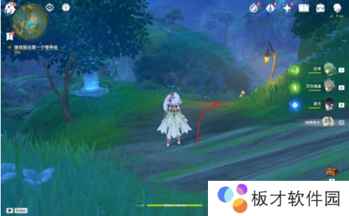 7、与众人对话后,我们跟着指引,一路向上走即可