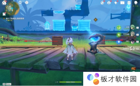 8、来到上层后,我们借助四叶印,飞到中间的浮空岛上即可
