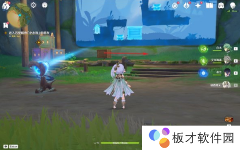 4、然后使用旁边的聚流映灯,进入先成图,开启宝箱后,离开先成图