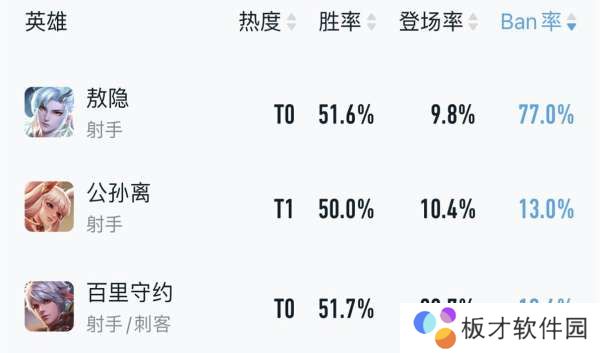 T0梯队:敖隐、百里守约、公孙离