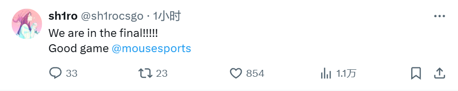 MOUZ,成功晋级决赛,让我们看看选手们的赛后动态吧!