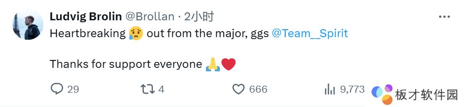 Brollan:令人心碎,从Major出局了,GG Spirit,谢谢大家的支持。
