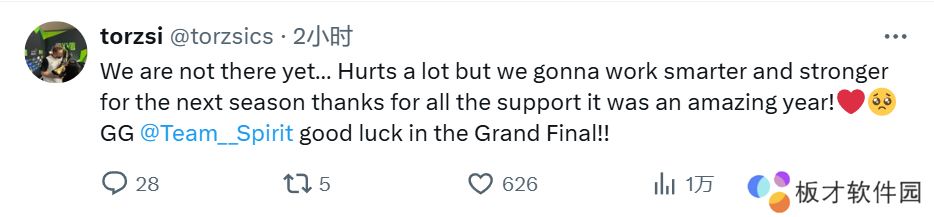 torzsi:我们还没有足够强大....虽然很痛苦,但我们下个赛季会更加努力,更加强大。感谢大家的支持,这是很精彩的一年!