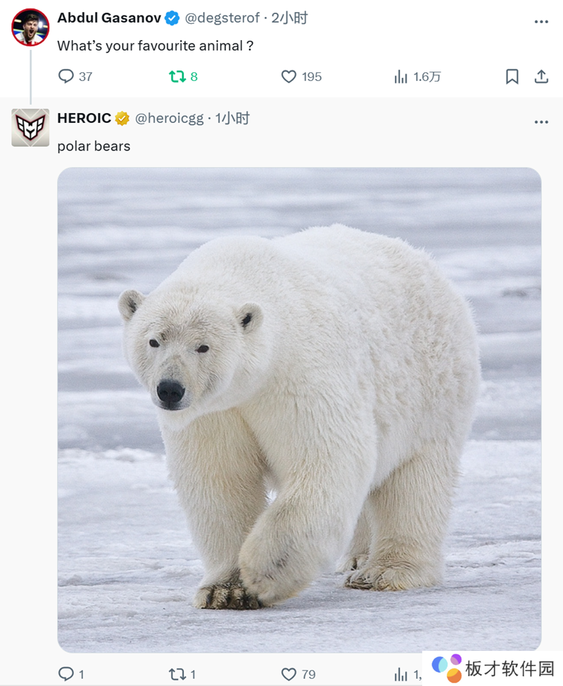 随后当degster发布动态“你最喜欢的动物是?”时,HEROIC回复了一张北极熊的照片,暗指社区传言degster可能会加入