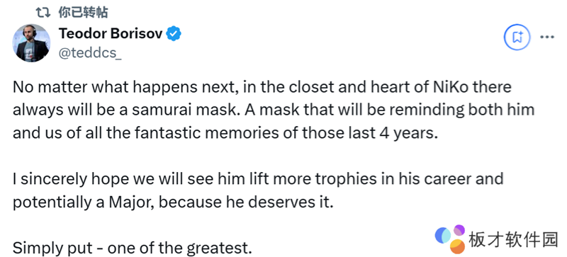 tedd:无论接下来发生什么,在NiKo内心深处,总会有一个武士面具的印记。这个面具会让他和我们都铭记过去四年里那些美妙的回忆。