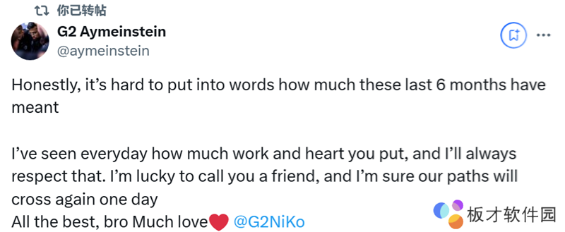 我还要感谢@G2 Esports这精彩的四年多时光。这是一段难以忘怀的旅程,充满了令人难以置信的回忆,我会永远珍视。