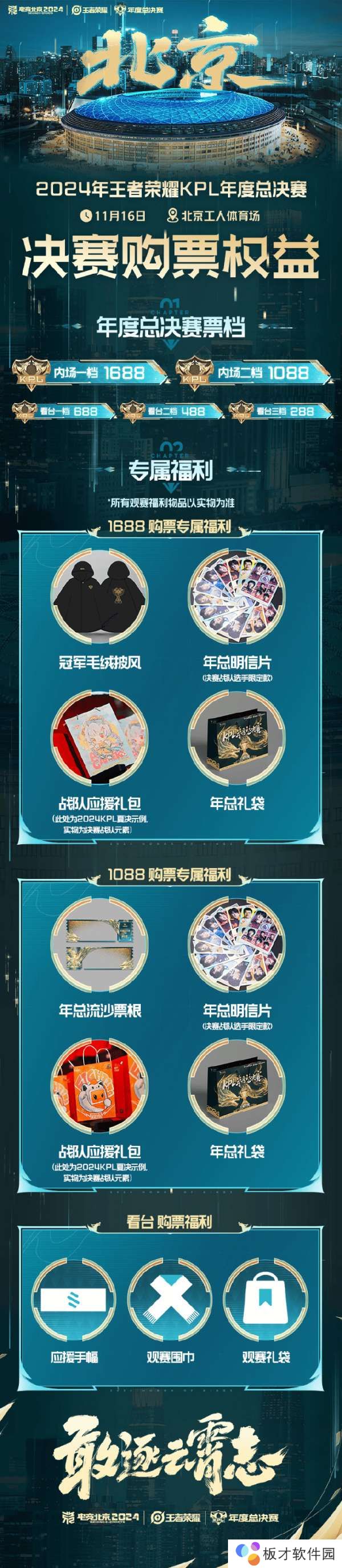 1688购票专属福利:冠军毛绒披风、年总明信片、战队应援礼包、年总礼袋;