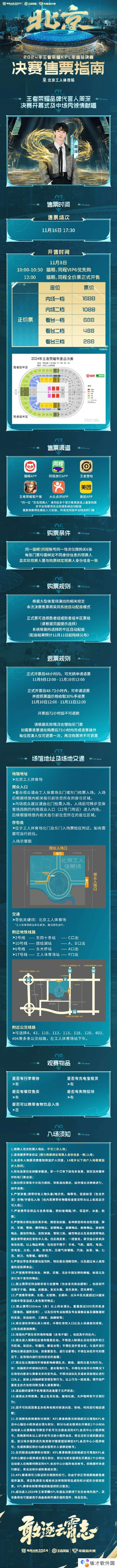 更多售票详情以及场馆信息请见下图,想要来到决赛现场的小伙伴记得定好闹钟准时抢票,期待在现场一同见证冠军的诞生!