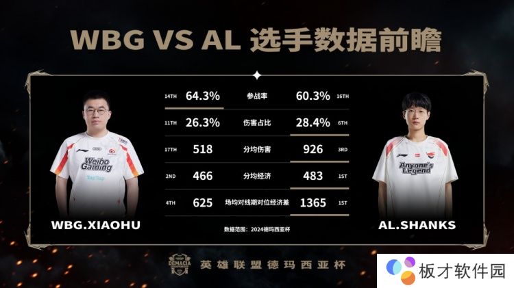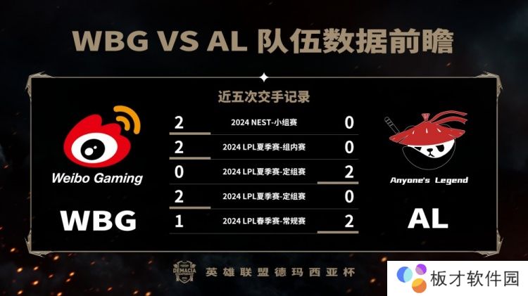 直播吧12月26日讯 英雄联盟赛事数据官博更新,发布2024德玛西亚杯半决赛-WBG vs AL数据前瞻。