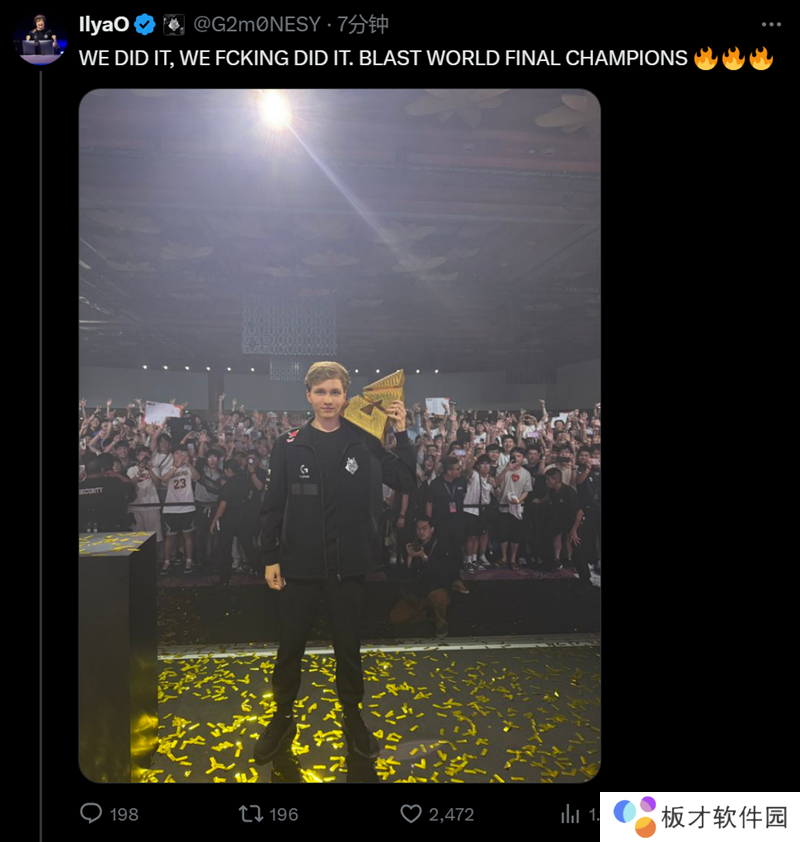 G2战队的赛后夺冠动态吧。
