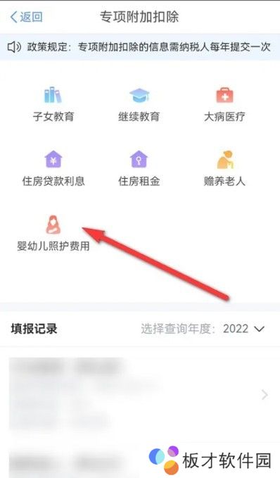 2、然后进入到专项附加扣减页面,找到【婴幼儿照护费用】;