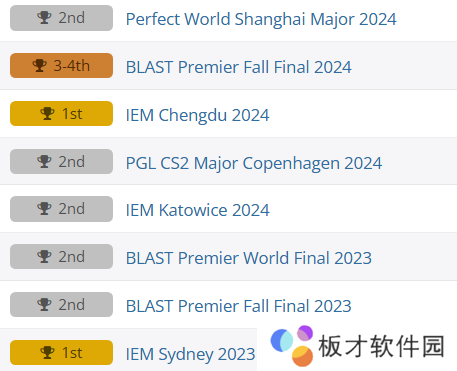 从CS新版本正式发布以来,FaZe一共在游戏中七次打进大赛决赛。但他们只有两次捧起冠军奖杯,分别是2023年IEM 悉尼站和2024 IEM 成都站,剩余的大赛决赛都先后折戟。