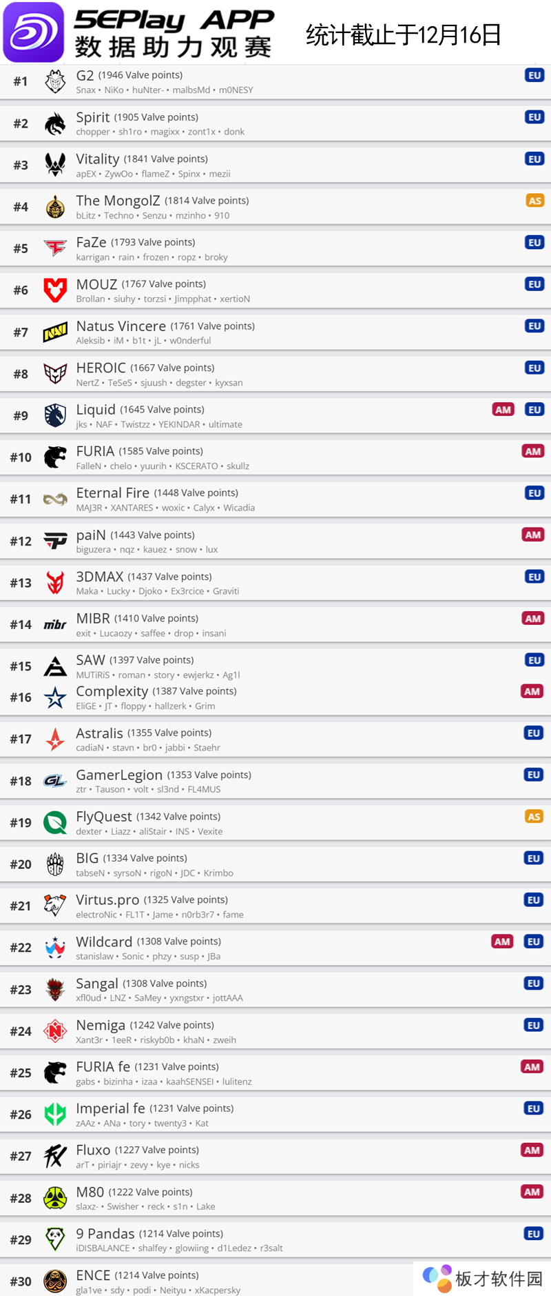 今天V社更新了旗下CS世界排名,这一世界排名会和明年的赛事邀请紧密联系,因此是主办方和战队都必须关注的内容。