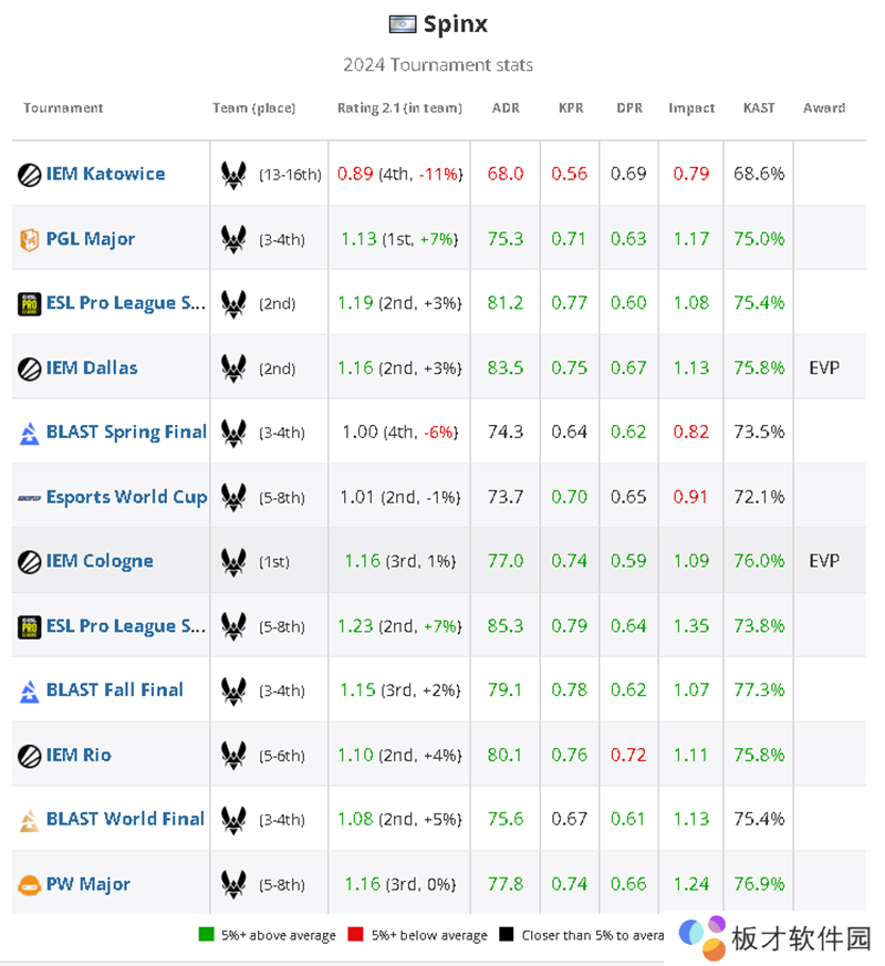 Spinx连续第三次入选TOP20选手榜单,成为本年度在赛事(13项赛事中有12项为积极作用)、地图(86.9%的地图Rating高于0.85)和回合(75.5% KAST,TOP8)方面表现最稳定的选手之一。