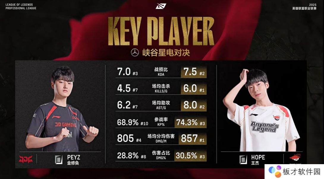 今日LPL官方直播间放出双方AD数据对比,Hope选手数据爆炸夸张,两项数据排联盟第一,6项数据对比均压制Peyz!
